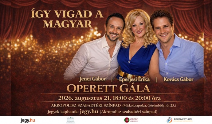 "Így vigad a Magyar" Operett Gála Miskolctapolcán az Akropolisz Szabadtéri Színpadon 2026 júliusában és augusztusban.